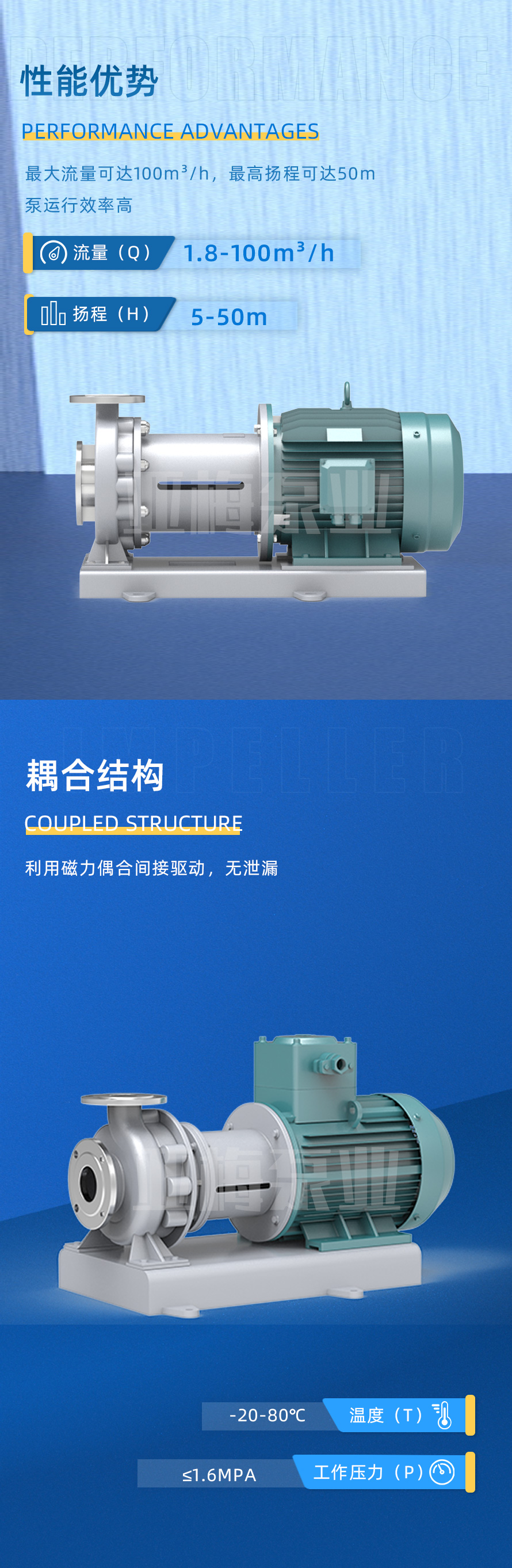 YMCQ-B系列磁力驅動泵是將永磁聯軸器的工作原理用于離心泵的高科技產品,設計合理,工藝先進,具有全密封,無泄漏,耐腐蝕等特點。